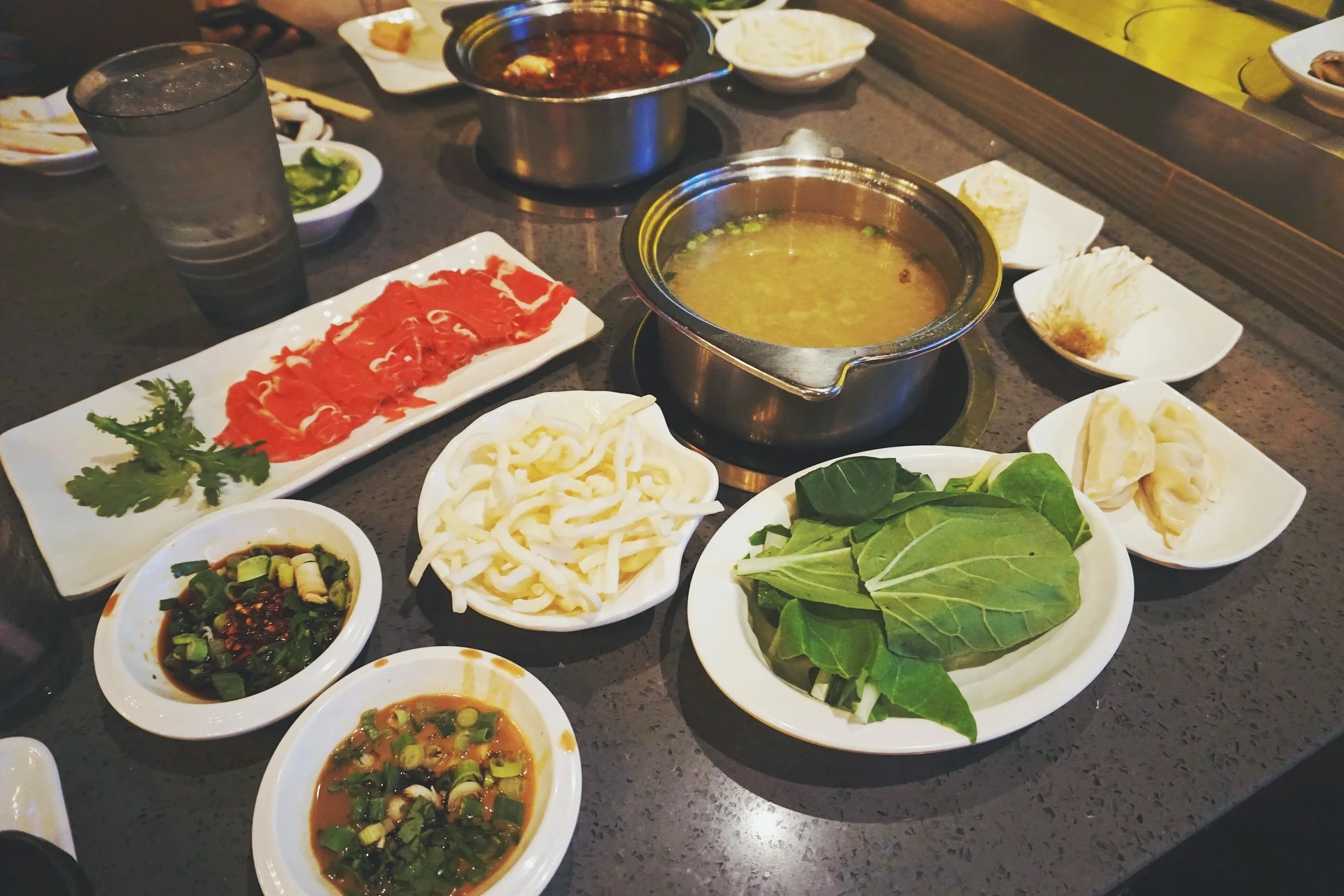 Seapot is great, reasonable prices and they have all the basic necessities you would need for hot pot. Their meat doesn't taste the most flavorful to me so not really my favorite. I love their veggie selection and sauce bar. It's not the most amazing hot pot you will ever eat, but I would highly recommend it purely just for the experience to use the conveyor belt.
